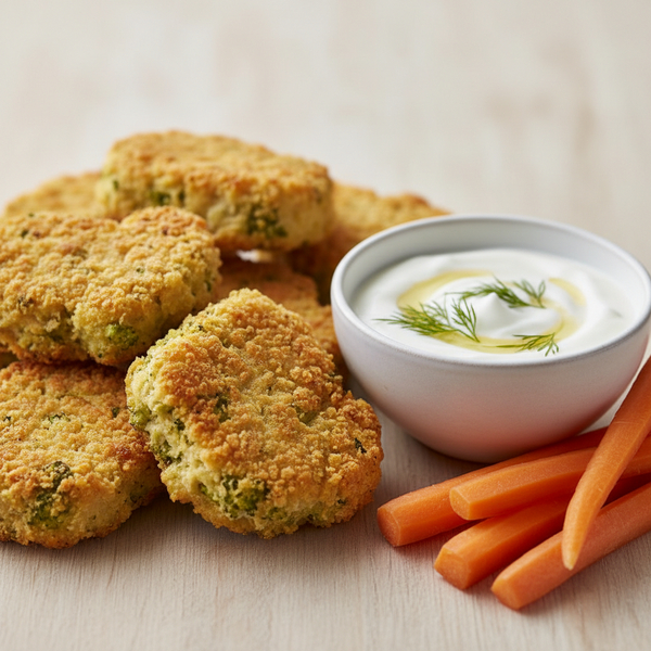 Estes nuggets ficam perfeitos acompanhados de um molho de iogurte natural com hortelã e limão, uma opção leve e refrescante. Para a criançada, sirva com ketchup caseiro sem açúcar. Eles também podem ser congelados já empanados (antes de assar) por até 3 meses, sendo uma ótima opção para ter um lanche rápido e saudável sempre à mão.