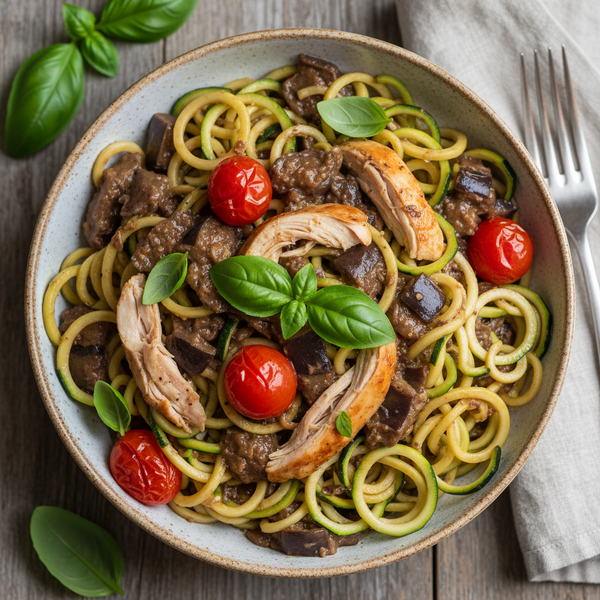 Massa de Abobrinha Low-FODMAP com Molho de Berinjela e Tomate: Energia e Digestão Leve